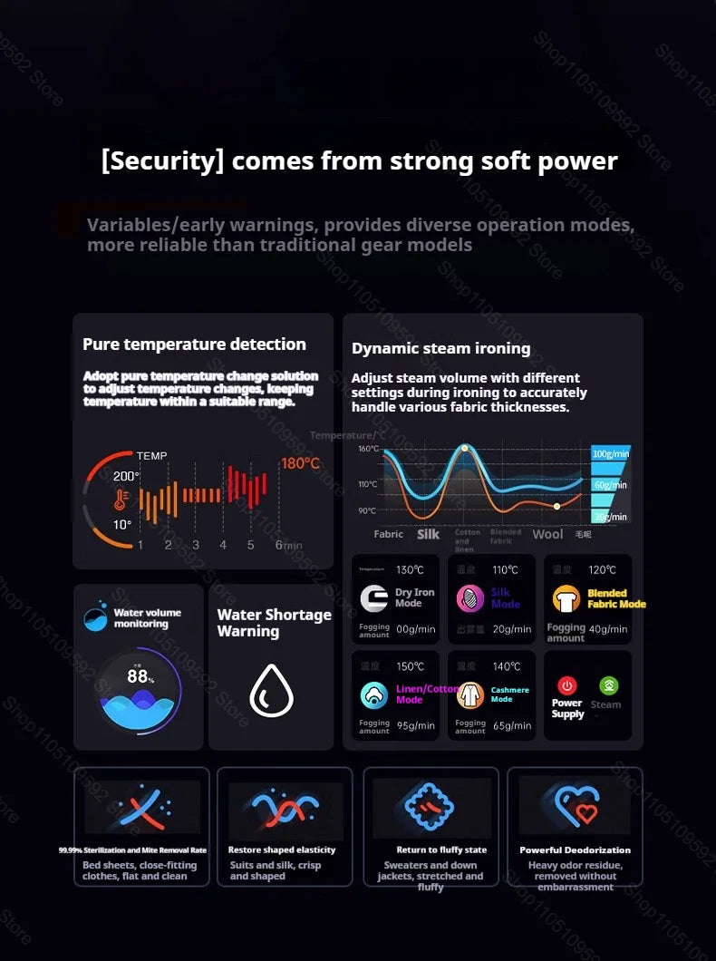 Safe auto-shutoff and multiple steam modes tackle tough wrinkles on all fabrics, from delicates to heavy curtains.